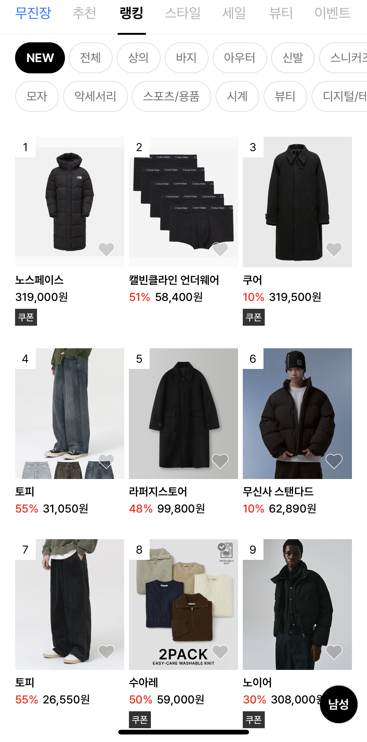 무신사 냄새가 난다 의 밈이 시작된 무신사 랭킹 순위.