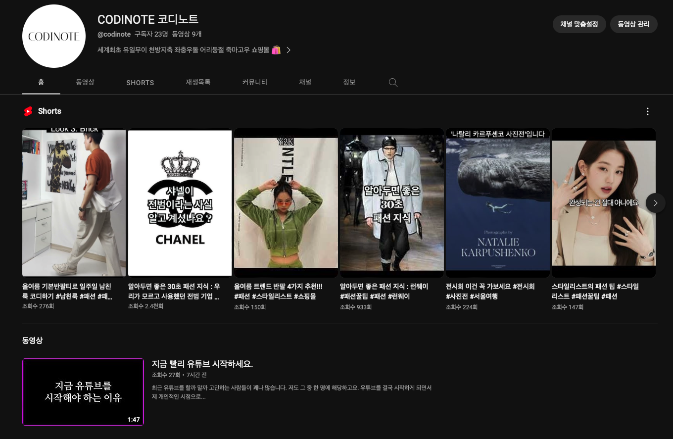 그래서 유튜브 채널 자체는 '패션'에 국한되지 않고 다양하게 컨텐츠를 제작해서 운영을 해보려고 한다. 일종의 엔터느낌으로?