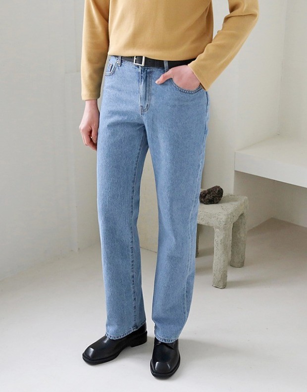 : 스트레이트 핏의 바지는 허벅지부터 밑단까지 일자로 쭉 떨어지는 바지를 말한다.