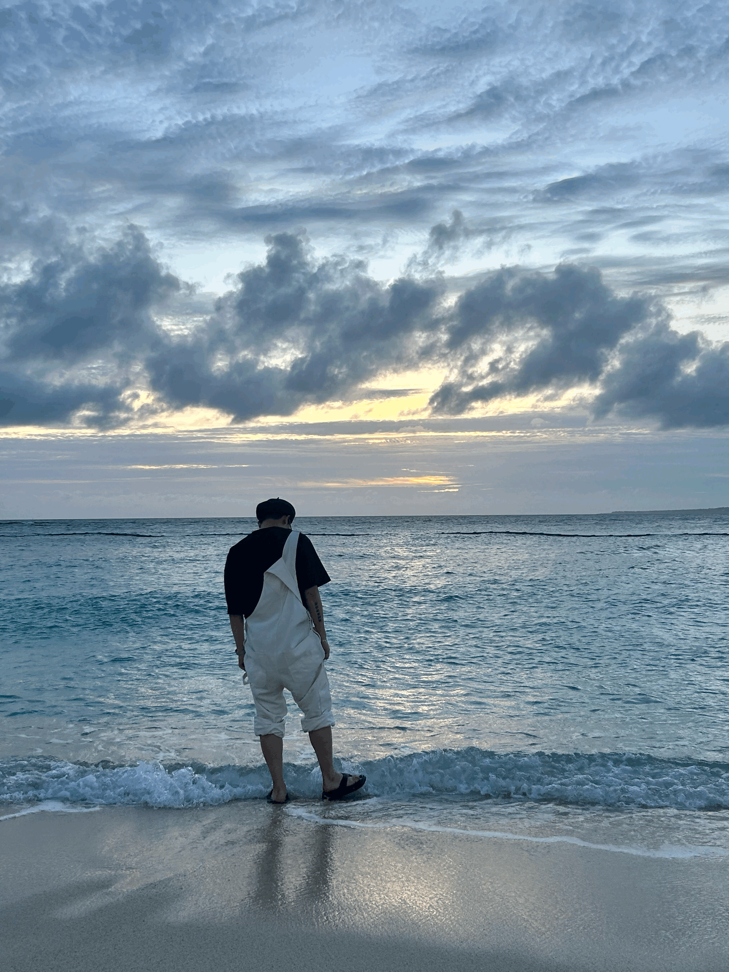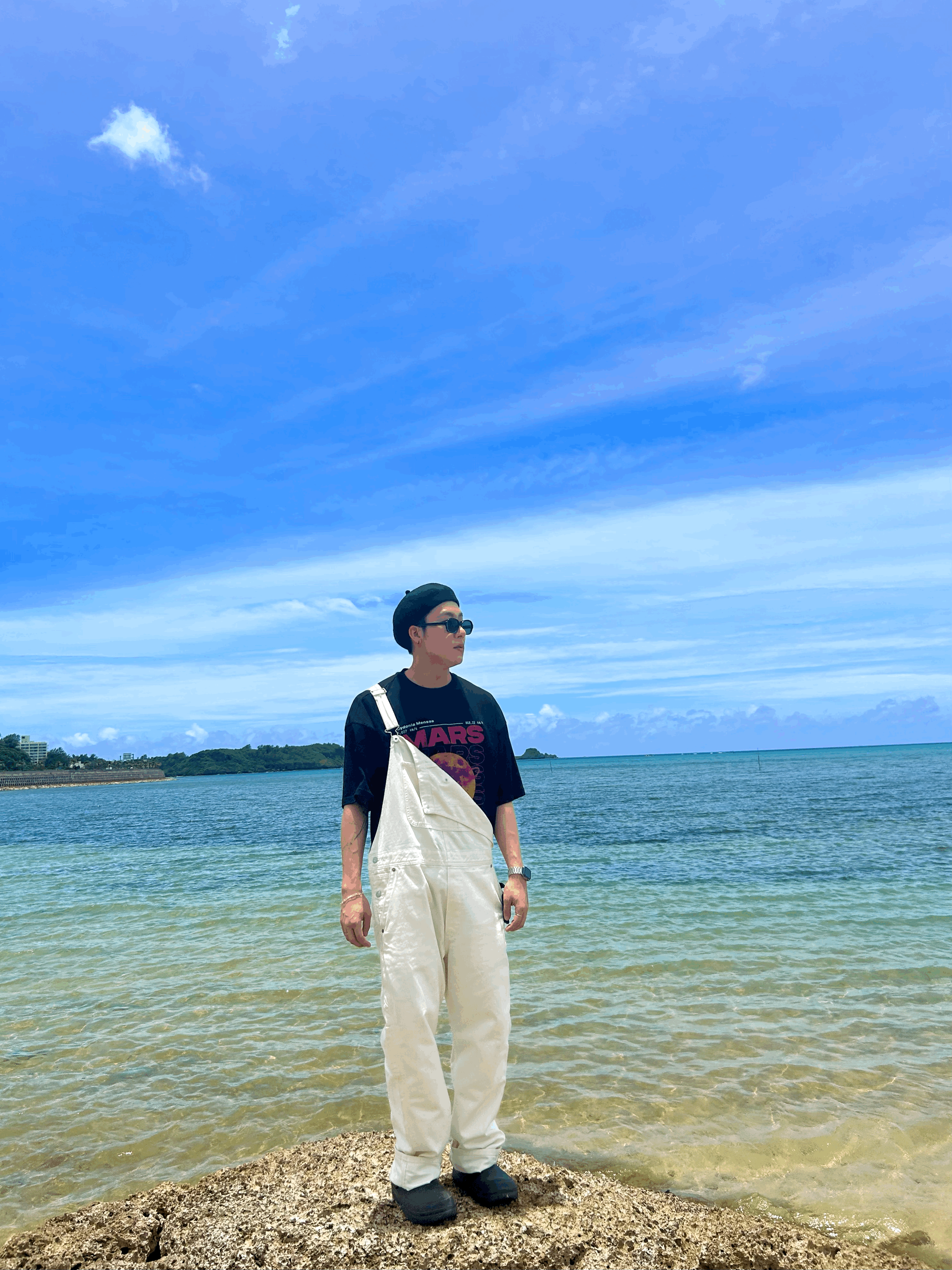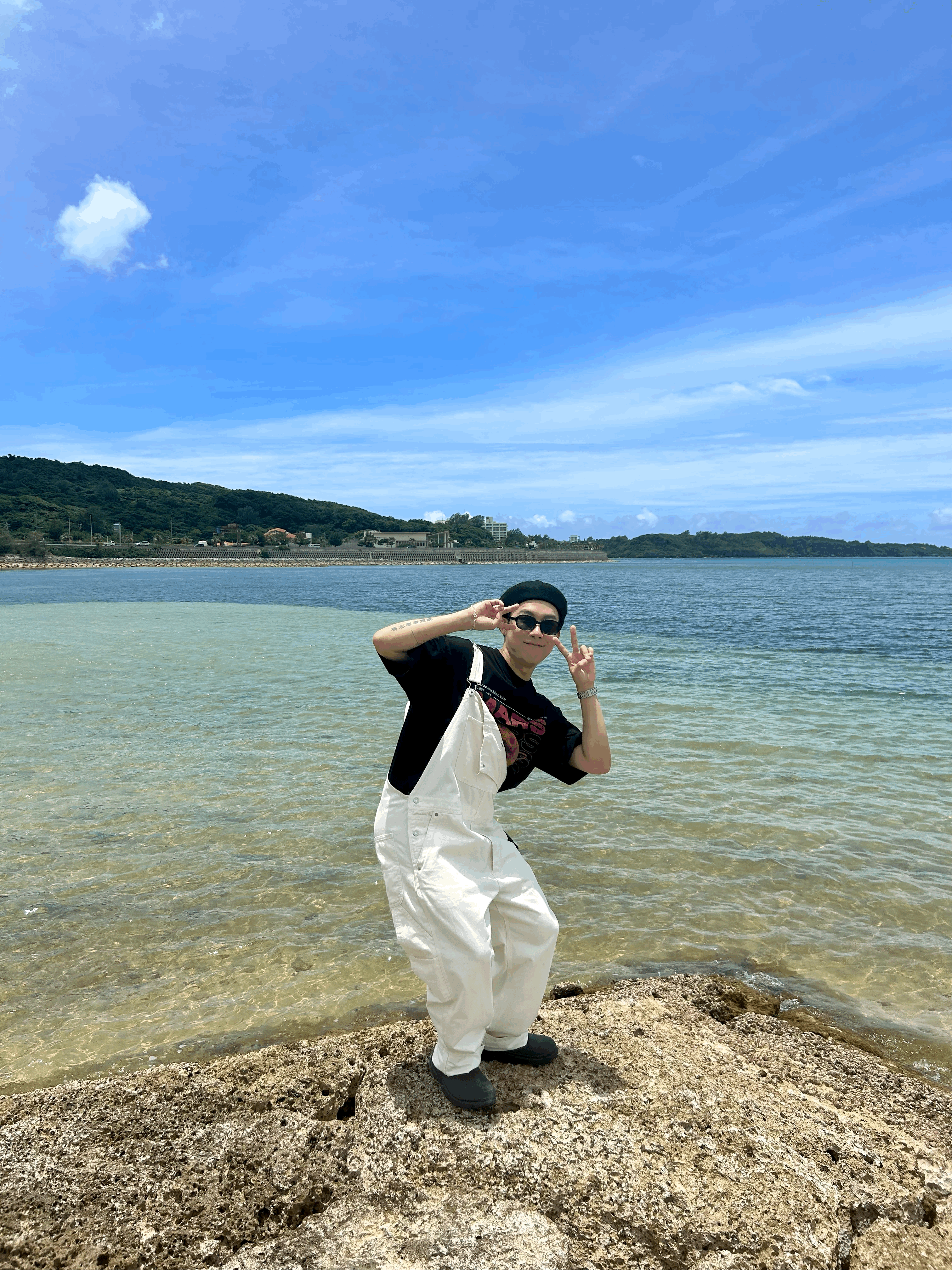 오늘은 오키나와의 어머랄드 빛 바다를 보러 갈거라서 밝은 화이트 컬러감을 메인으로 써서 바다와 잘 어울리는 스타일링을 해봤음