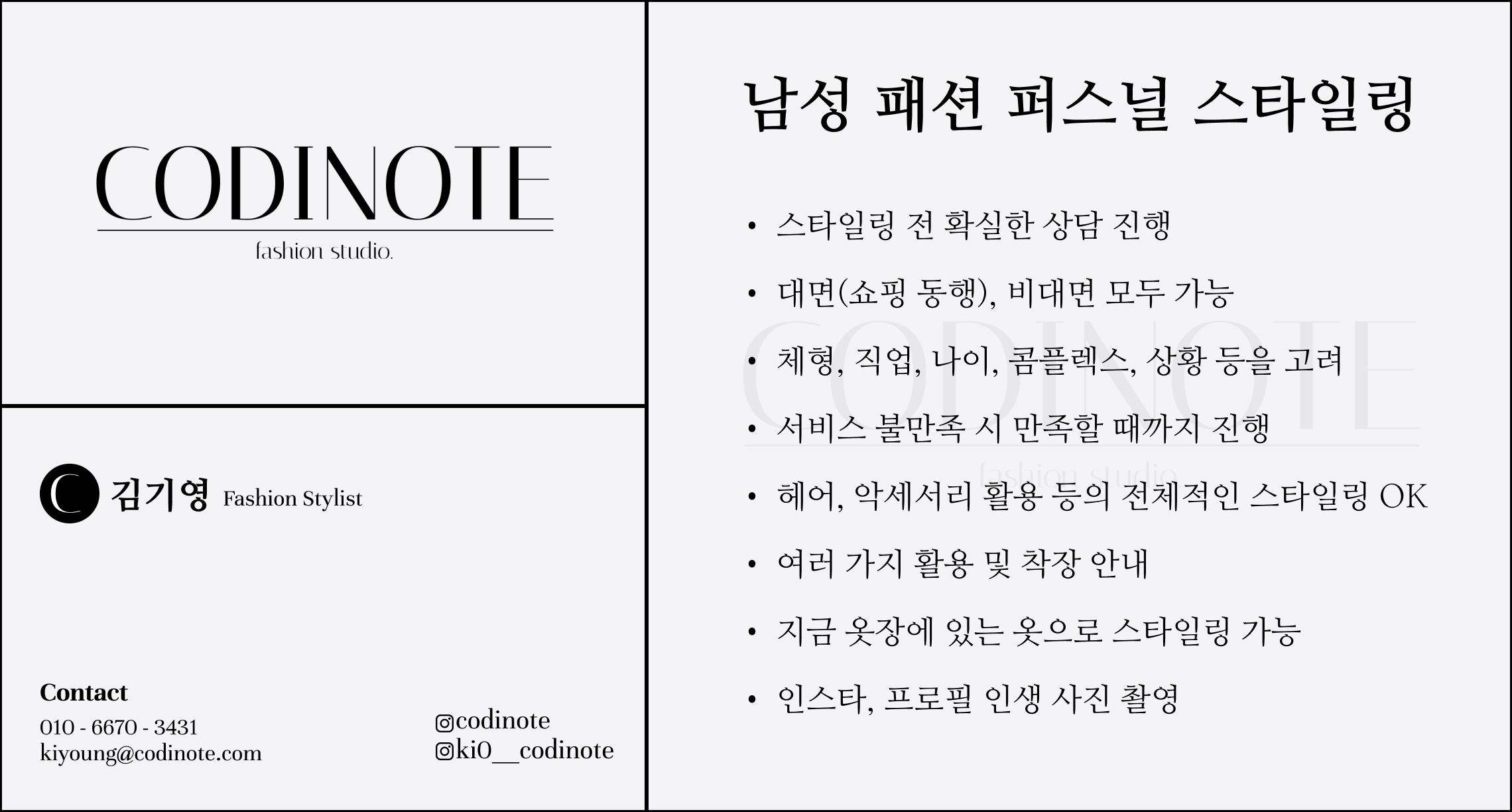 패션스타일리스트가 운영하는 Men's Note by. CODINOTE : 코디노트